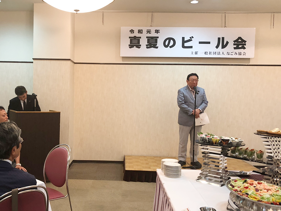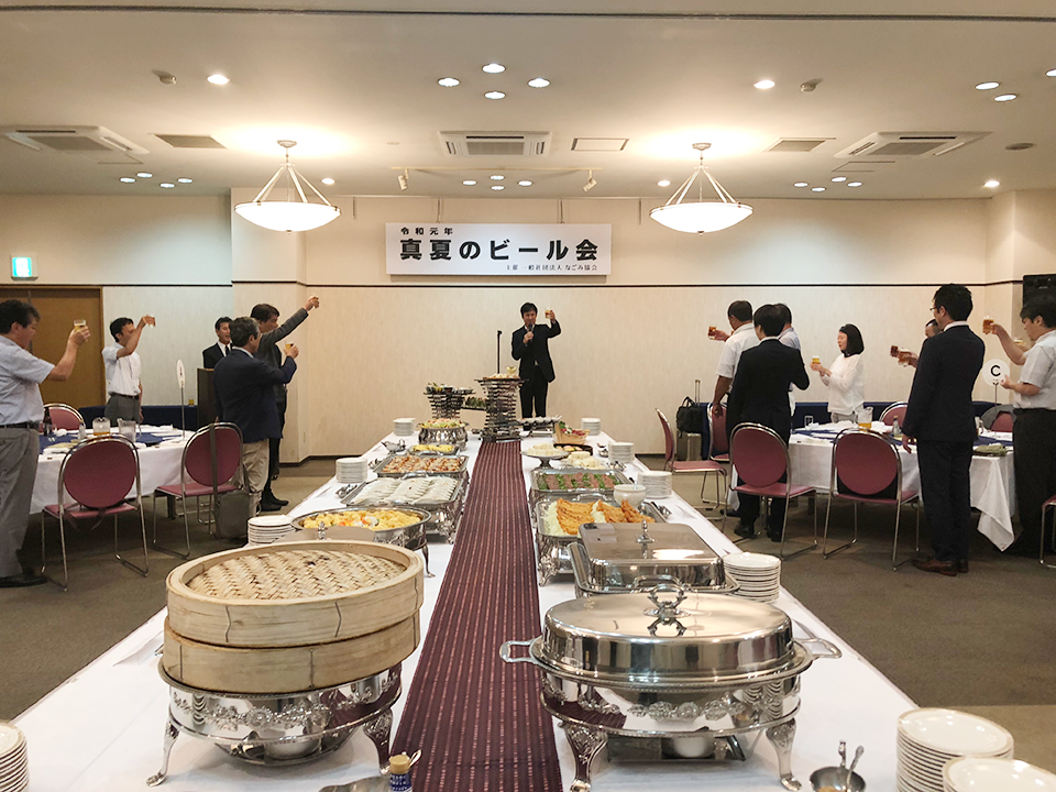 本日は、なごみ協会設立を記念して、浩養園にて「真夏のビール会」を開催いたしました。 河村名古屋市長の挨拶により会は始まり、杉本和巳衆議院議員、筒井タカヤ愛知県議会議員など多くの来賓の皆様からご挨拶を頂きました。