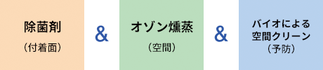 上記の工程にて、新型コロナウイルスの除菌・消毒および予防除菌を遂行いたします。